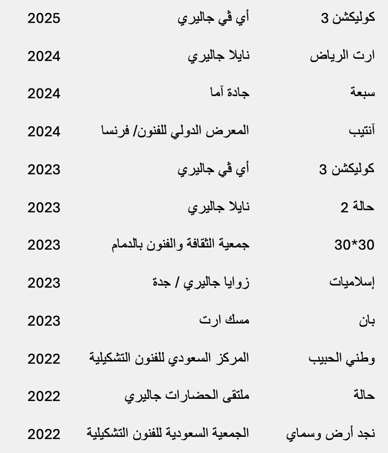 Manal Al thewaibi is a Saudi artist who graduated from the College of Pharmacy at King Saud University. She worked at King Abdulaziz Medical Hospital and King Abdullah International Medical Research Center for some time before deciding to fully dedicate herself to art in 2018. She has participated in various art exhibitions in the Kingdom and achieved second place in Watani Al-Habib National Exhibition at the Saudi Center for Fine Arts. Manal aims to develop her artistic identity through continuous practice and participation in specialized visual art courses.